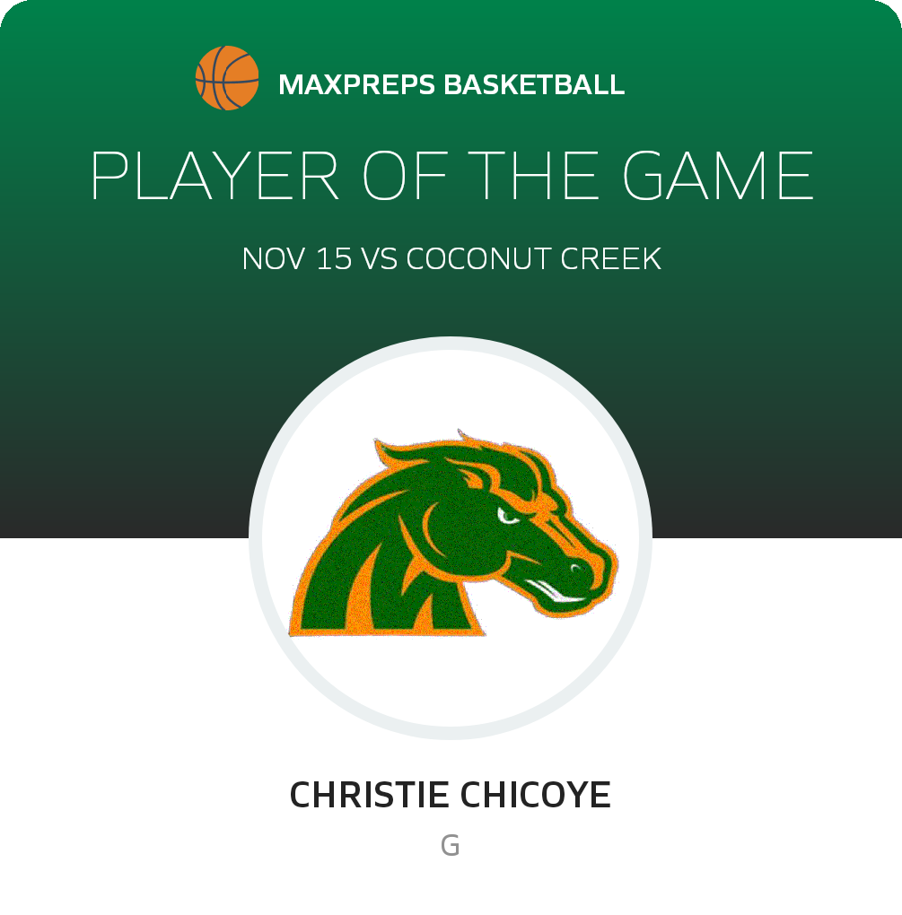 The Coconut Creek (FL) varsity basketball team lost Wednesday's neutral tournament game against McArthur (Hollywood, FL) by a score of 38-24.