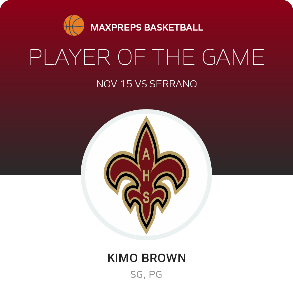 Congratulations to #1 Kimo Brown for being selected the Adelanto JV Basketball Player of the Game.