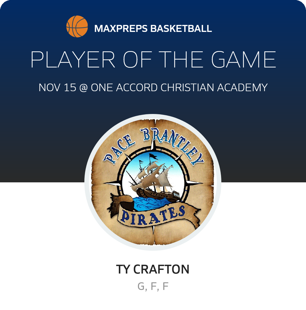 Congratulations to #10 Ty Crafton for being selected the Pace Brantley Basketball Player of the Game.
