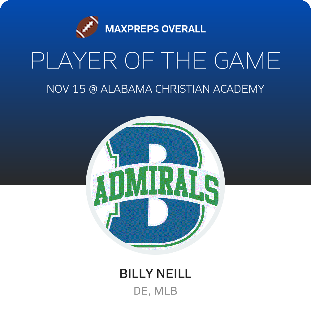 November 15, 2024: Montgomery, AL 36109 In Friday's non-league game, the Bayside Academy Admirals (Daphne, AL) football team were victorious over the host Alabama Christian Academy Eagles (Montgomery, AL), by a tally of 23-7.