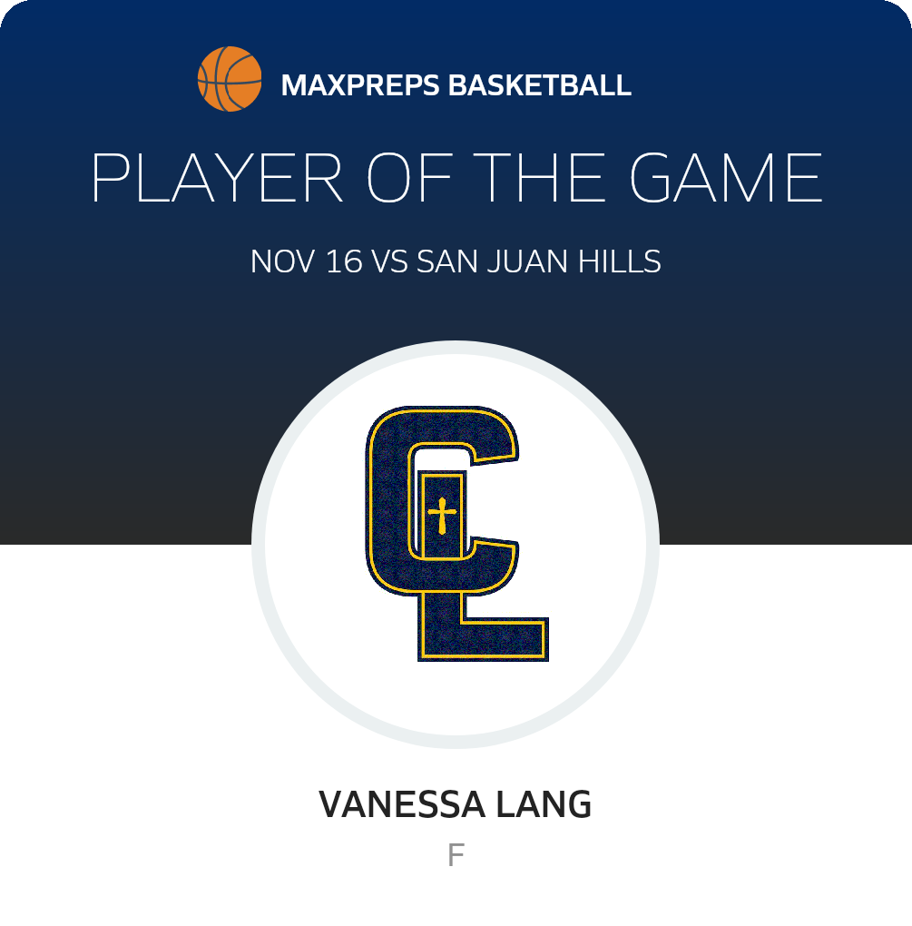 Congratulations to #33 Vanessa Lang for being selected the Crean Lutheran Girls Freshman Basketball Player of the Game.