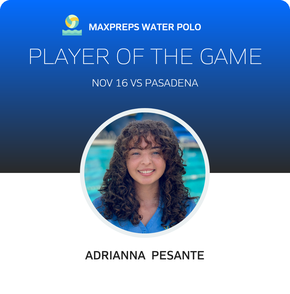 Congratulations to #12 Adrianna Pesante for being selected the Walnut Girls Water Polo Player of the Game.