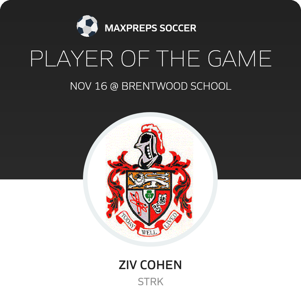 Congratulations to #10 Ziv Cohen for being selected the Beverly Hills JV Soccer Player of the Match.