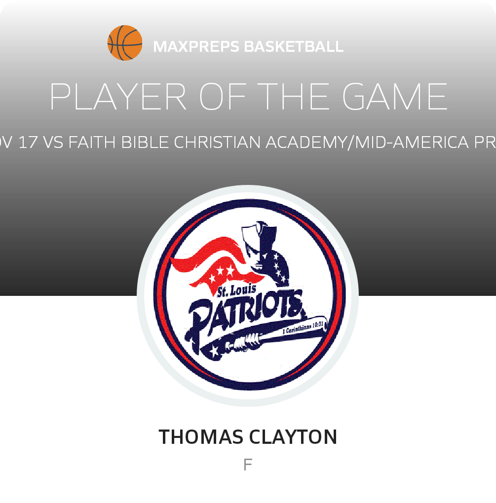 Next up, the Patriots clash with the St. Louis Christian HomeSchool Knights Knights (St. Louis, MO) in a non-league bout, on Thursday, November 17. St. Louis HomeSchool Patriots will attempt to upgrade on its 1-3 season record. The Knights go into the bout with a 2-1 record after their 66-24 non-league win over Liberty Christian Academy (Wright City, MO).