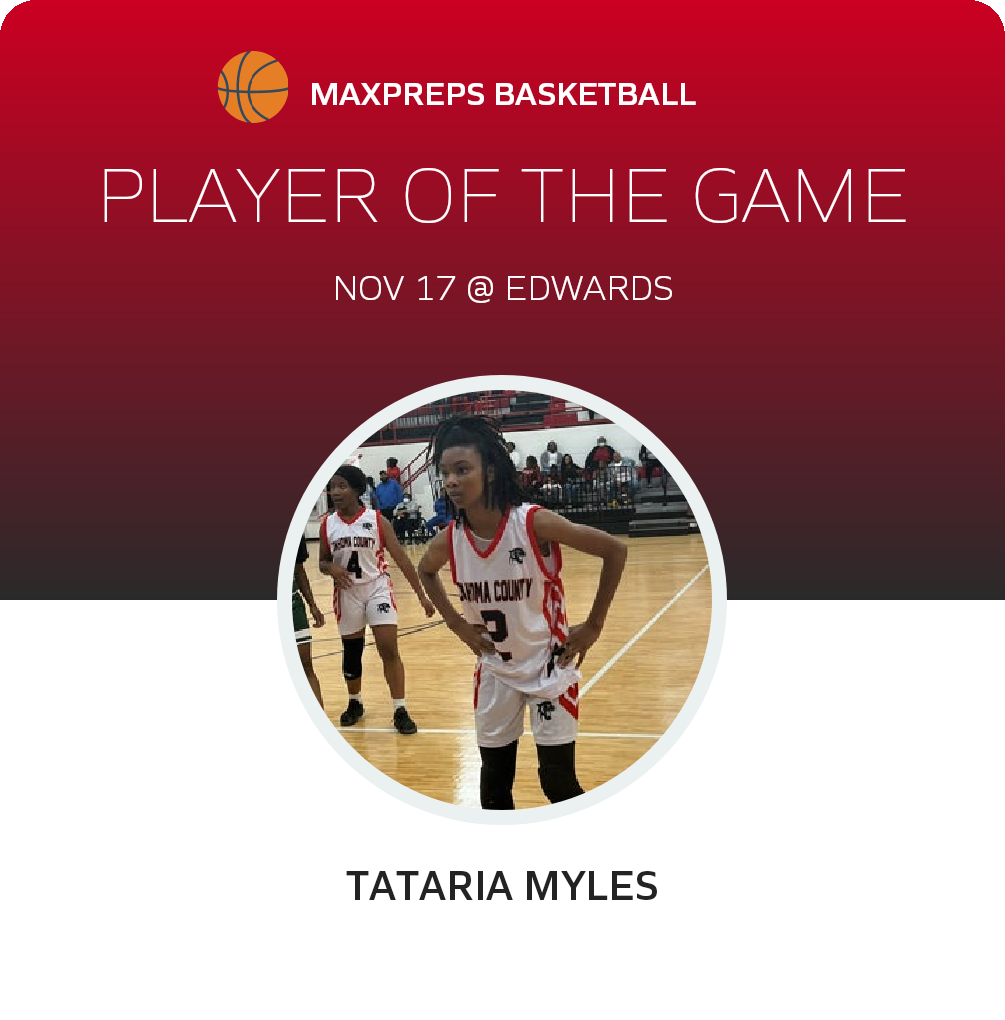 Congratulations to #2 Tataria Myles for being selected the Coahoma County Girls Basketball Player of the Game.