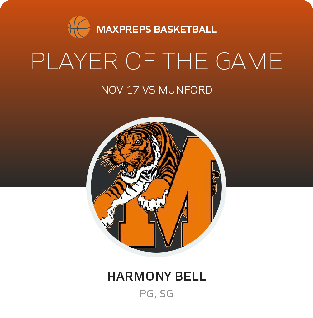 Congratulations to #1 Harmony Bell for being selected the Middleton Girls Basketball Player of the Game.