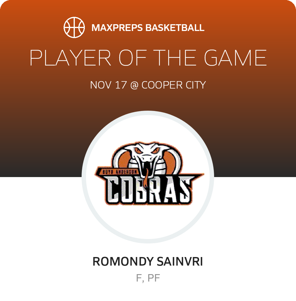 November 17, 2025: Cooper City, FL 33328 Boyd Anderson Cobras (Lauderdale Lakes, FL) boosters left the game satisfied Monday as they saw their basketball team topple the host Cooper City Cowboys (Cooper City, FL), 61-50 in a non-league game.