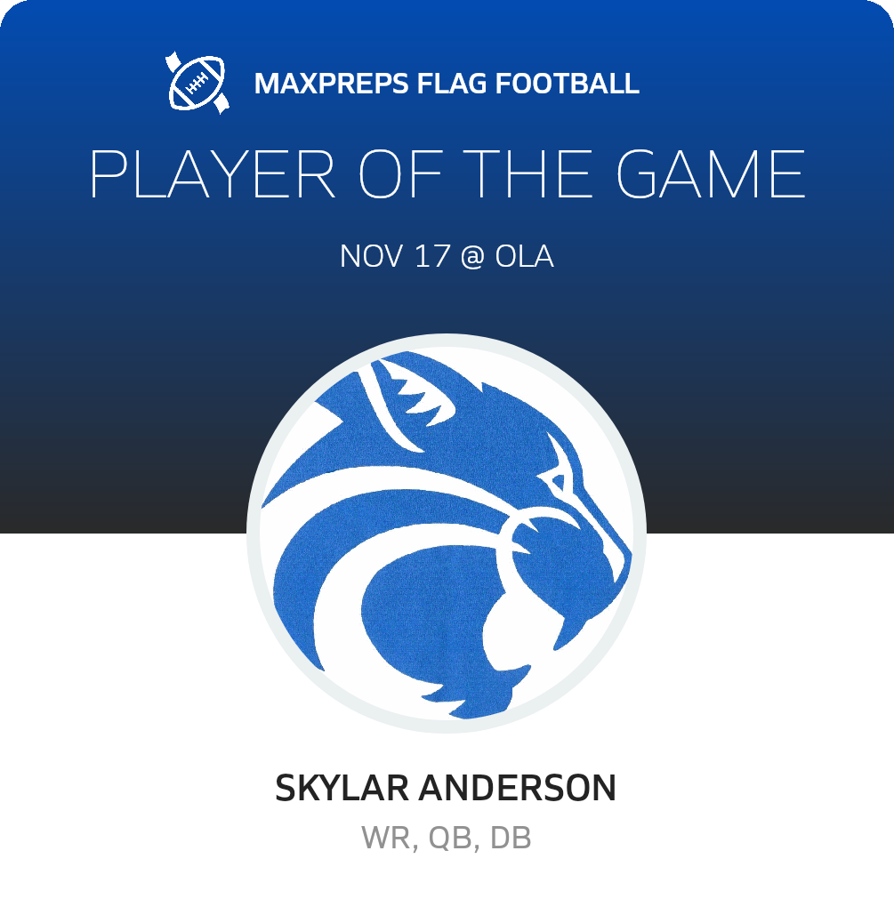 November 17, 2025: McDonough, GA 30252 The Locust Grove Wildcats (Locust Grove, GA) flag football knocked off the host Ola Mustangs (McDonough, GA), 21-6 in Monday's league outing.