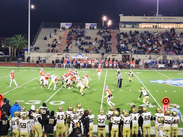 November 18, 2022: Jacksonville, FL 32217 The Bishop Moore Hornets football team (Orlando, FL), was knocked off 27-10 in Friday's non-league challenge with the host Bolles Bulldogs (Jacksonville, FL)