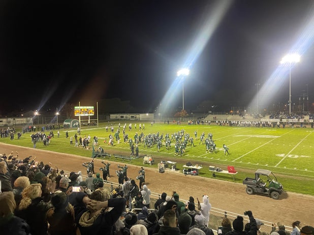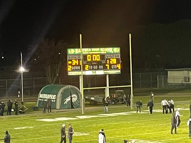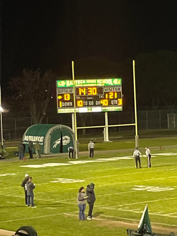 November 18, 2022: Rocklin, CA 95765 The Rocklin Thunder football team (Rocklin, CA), was tipped 34-28 in Friday's non-league challenge with the visiting Manteca Buffaloes (Manteca, CA)