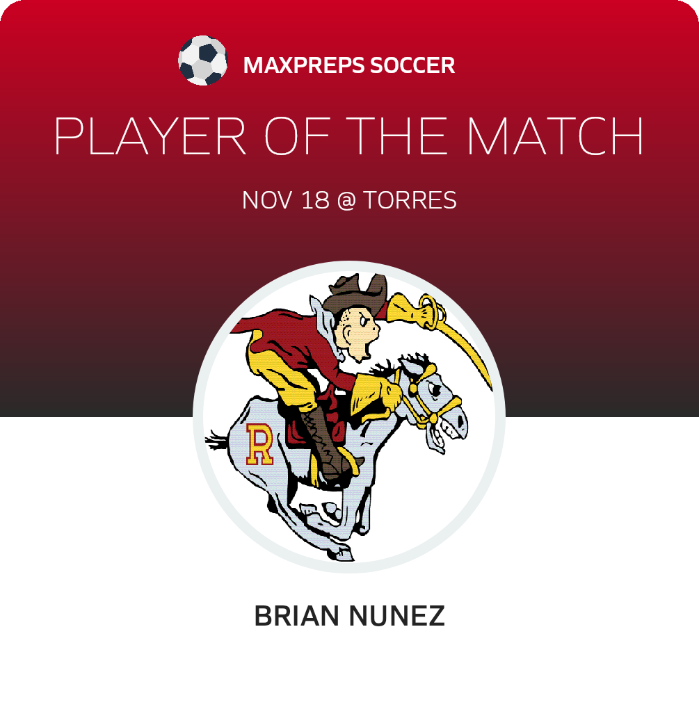 Congratulations to #13 Brian Nunez for being selected the Roosevelt JV Soccer Player of the Match.