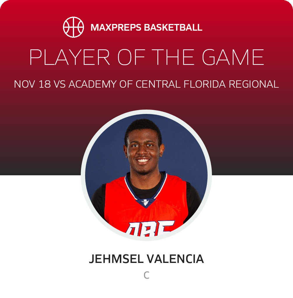 Congratulations to #55 Jehmsel Valencia for being selected the ABF Academy Basketball Player of the Game.