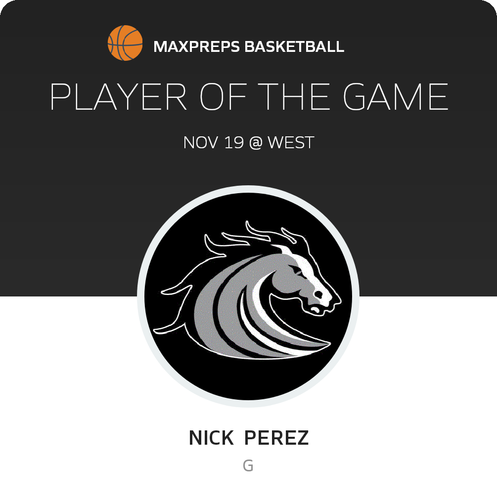 Congratulations to #15 Nick Perez for being selected the Stockdale Freshman Basketball Player of the Game.