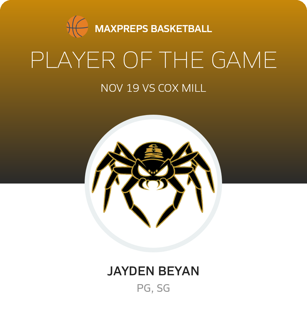 November 19, 2024: Concord, NC 28025 The Cox Mill Chargers (Concord, NC) basketball crushed the host Concord Spiders (Concord, NC), 83-61 in Tuesday's non-league bout.