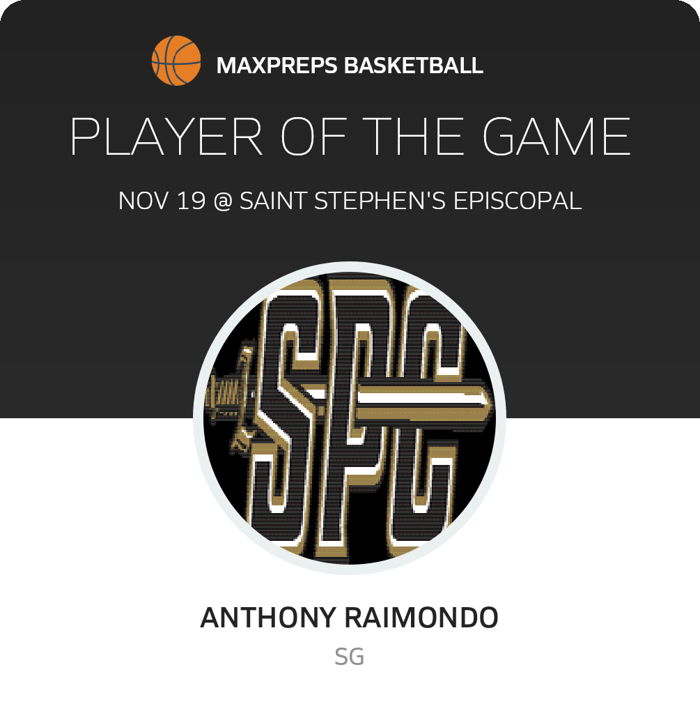 Congratulations to #23 Anthony Raimondo for being selected the St. Petersburg Catholic Basketball Player of the Game.