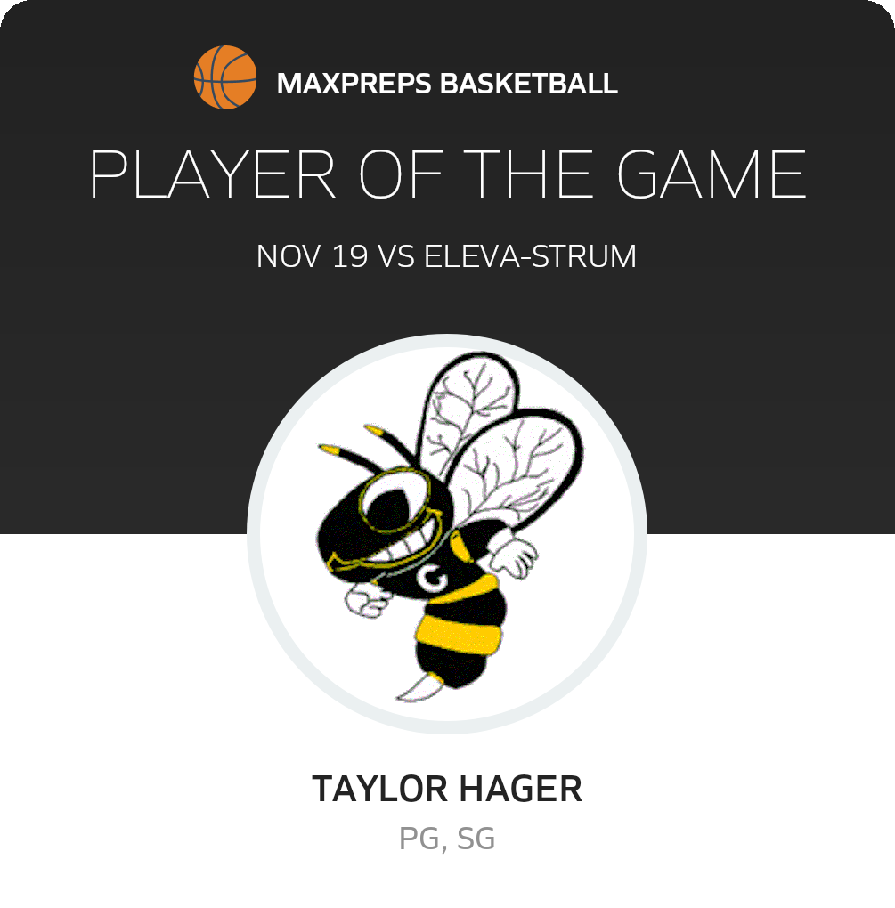 November 19, 2024: Cadott, WI 54727 The Cadott Hornets (Cadott, WI) basketball edged the visiting Eleva-Strum Cardinals (Strum, WI), 65-62 in Tuesday's non-league bout.