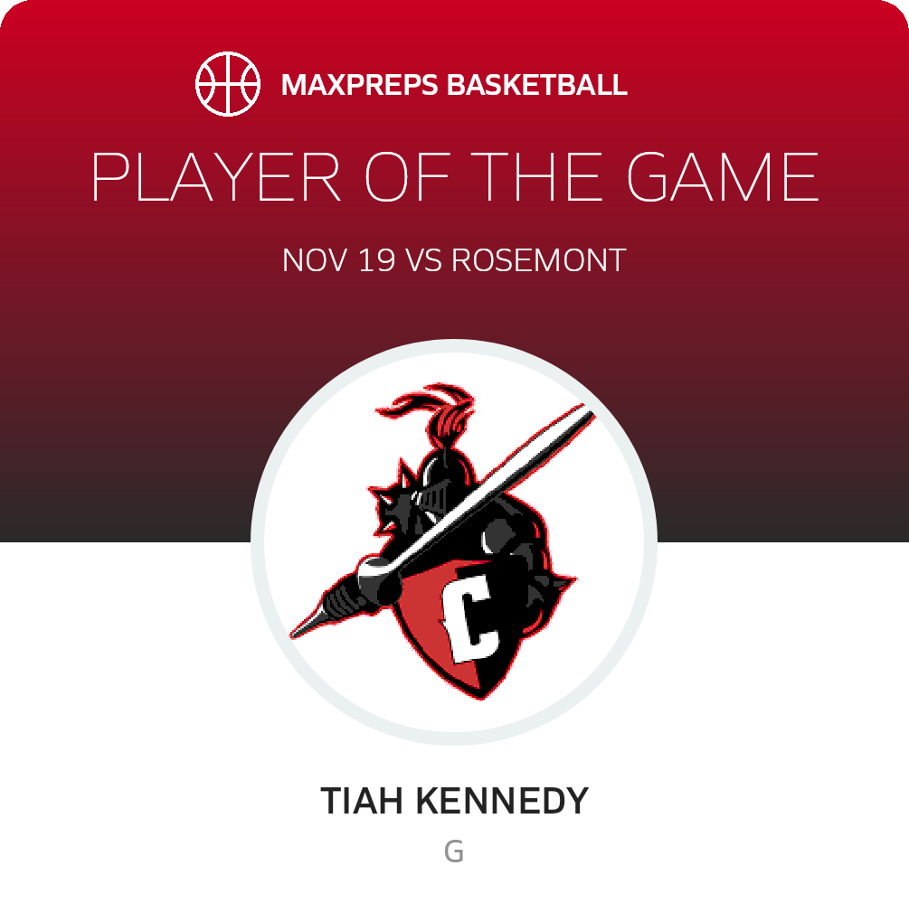 Congratulations to #2 Tiah Kennedy for being selected the Cordova Girls Basketball Player of the Game.