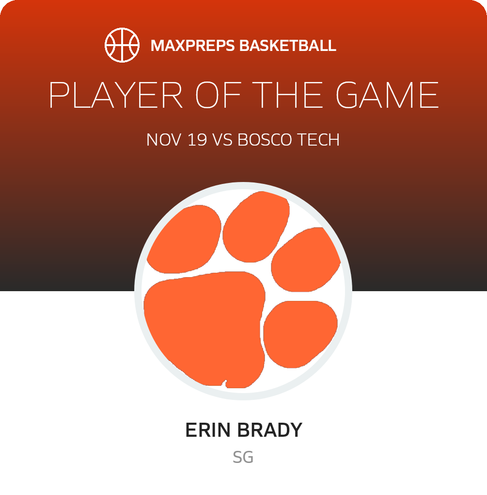 Congratulations to #25 Erin Brady for being selected the South Pasadena JV Basketball Player of the Game.