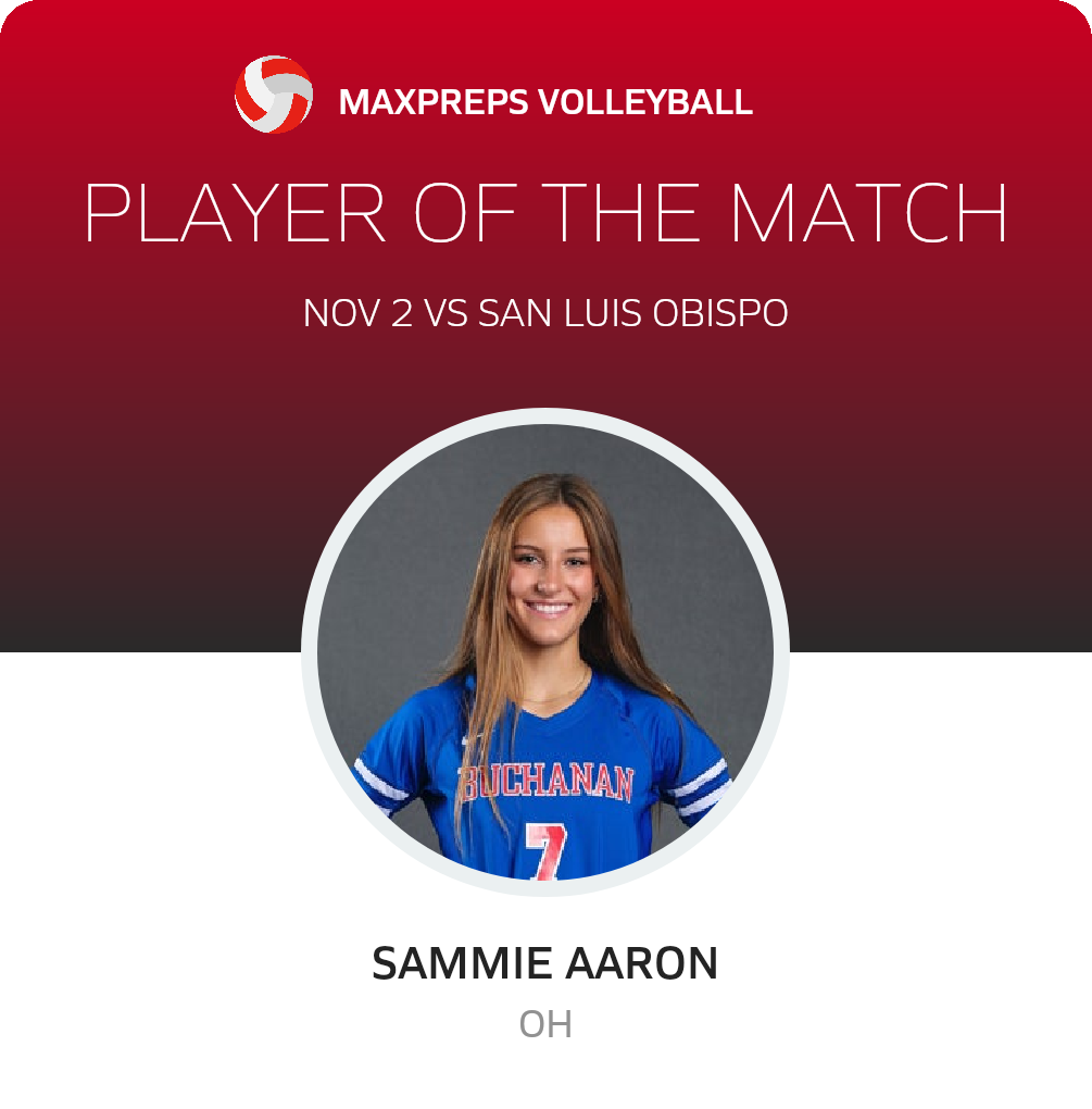 November 2, 2023: Clovis, CA 93611 In Thursday's non-league contest, the Buchanan Bears (Clovis, CA) volleyball squad knocked off the visiting San Luis Obispo Tigers (San Luis Obispo, CA), by a margin of 3-1.