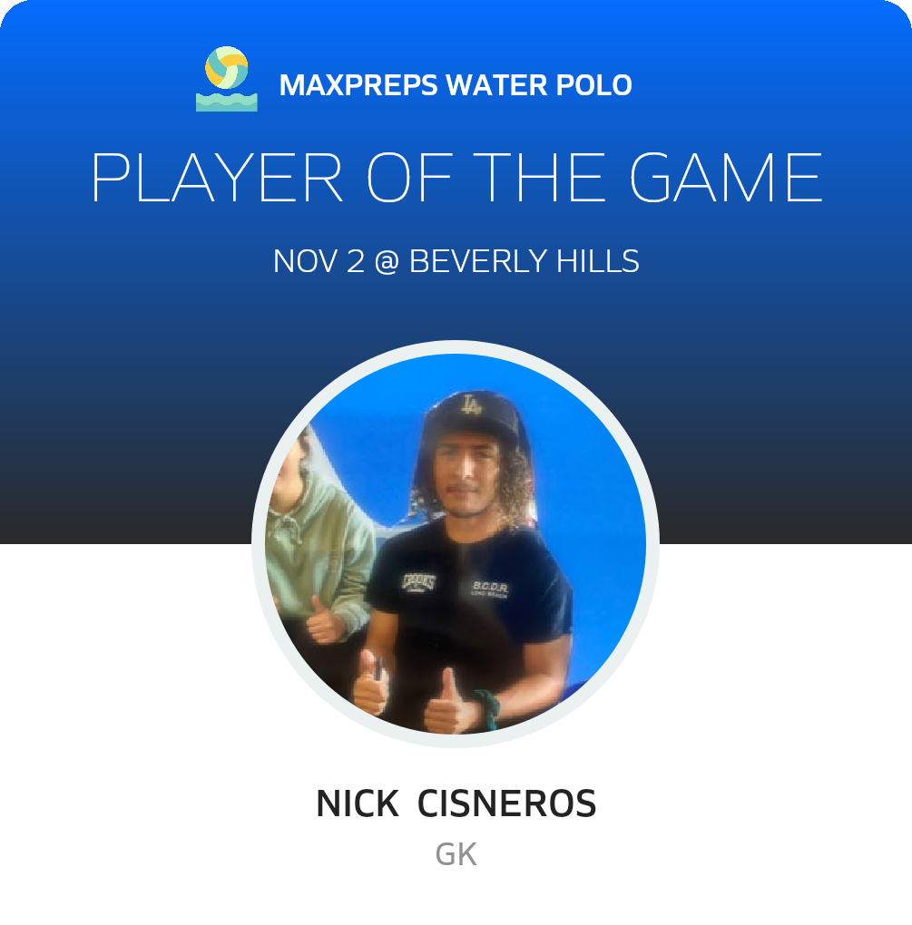 Congratulations to #1 Nick Cisneros for being selected the Liberty Water Polo Player of the Game.