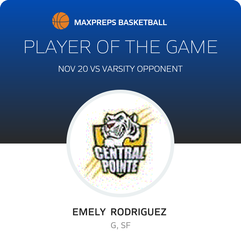 Congratulations to #12 Emely Rodriguez for being selected the Central Pointe Christian Academy National Girls Basketball Player of the Game.
