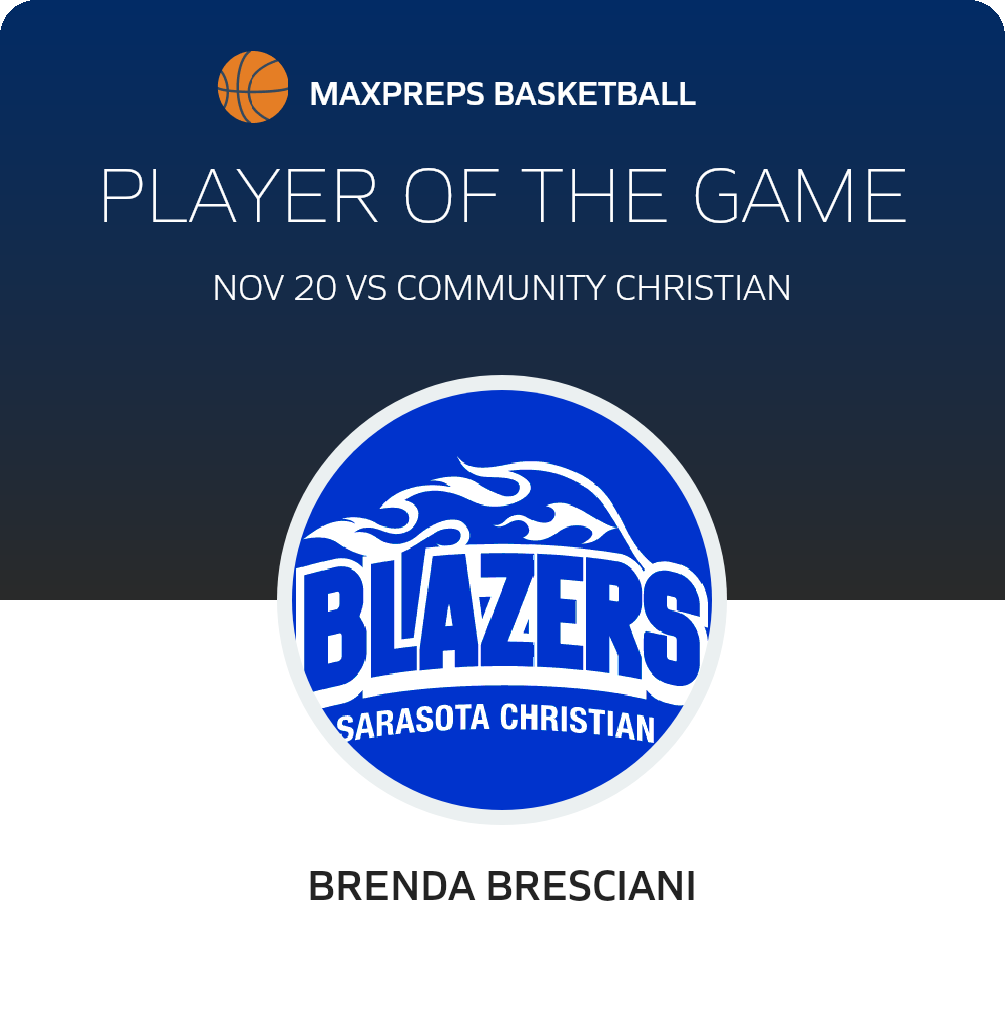 Congratulations to #22 Brenda Bresciani for being selected the Sarasota Christian Girls Basketball Player of the Game.