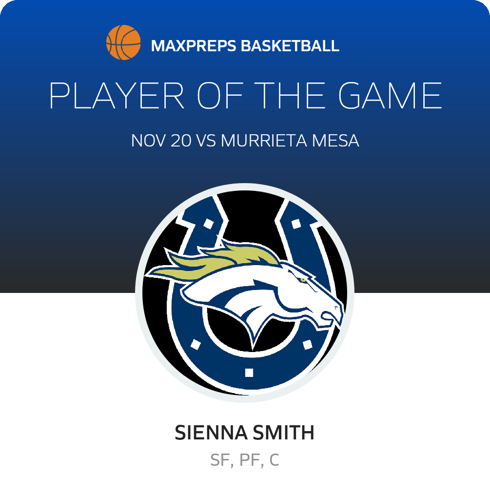 Congratulations to #21 Sienna Smith for being selected the Vista Murrieta Girls JV Basketball Player of the Game.