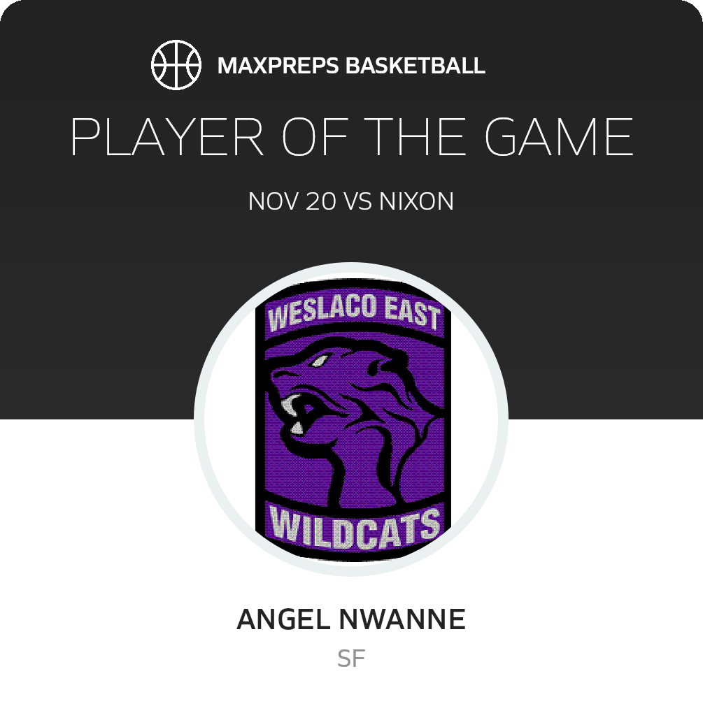 Congratulations to #21 Angel Nwanne for being selected the Weslaco East Girls Basketball Player of the Game.