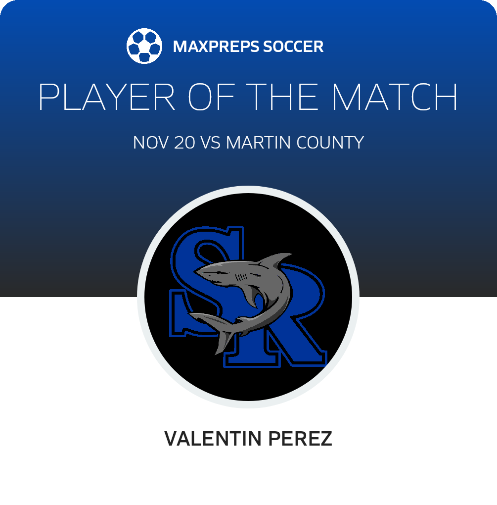 Congratulations to #1 Valentin Perez for being selected the Sebastian River Soccer Player of the Match.