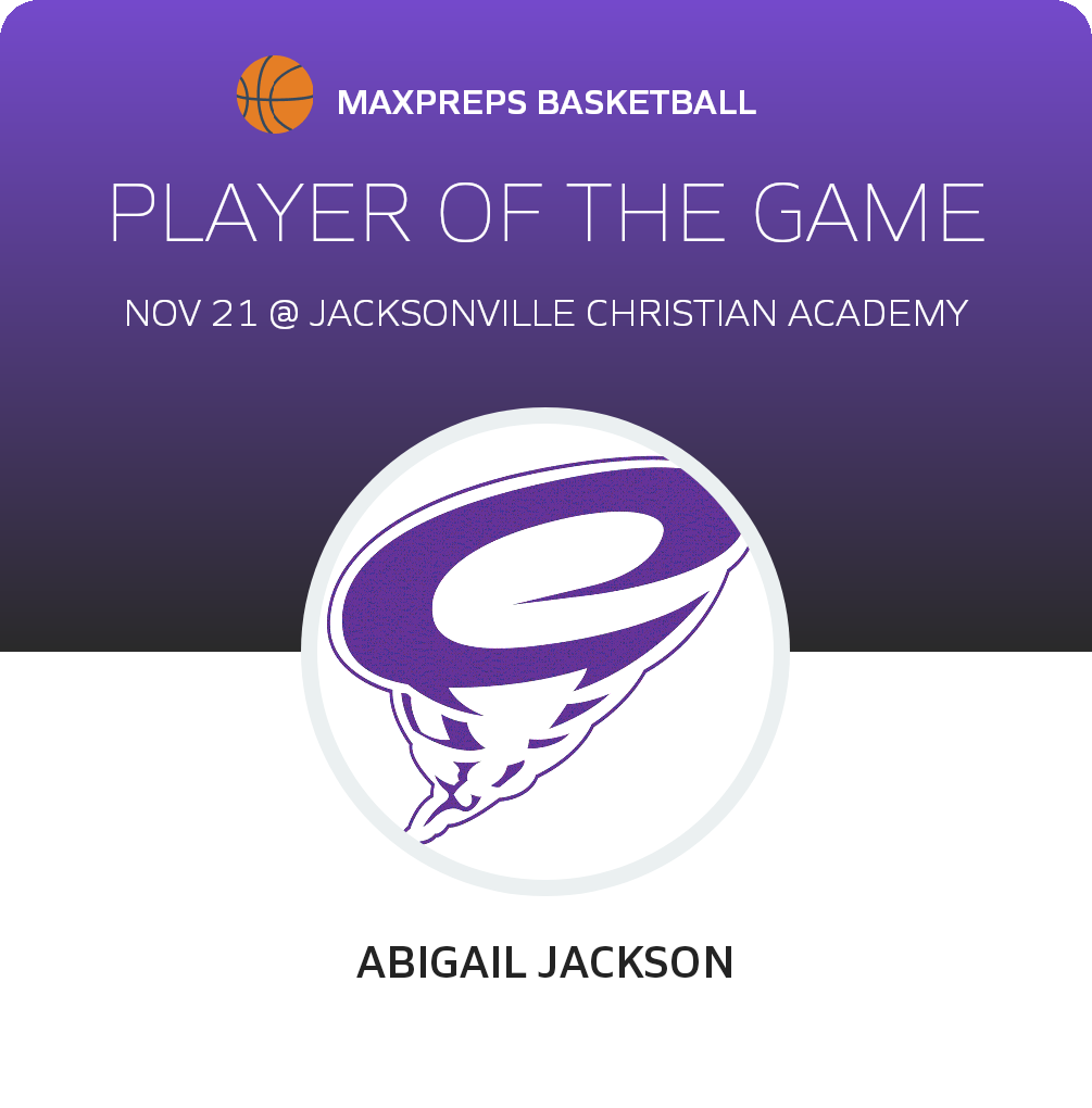 Congratulations to #2 Abigail Jackson for being selected the Community Christian Girls Basketball Player of the Game.