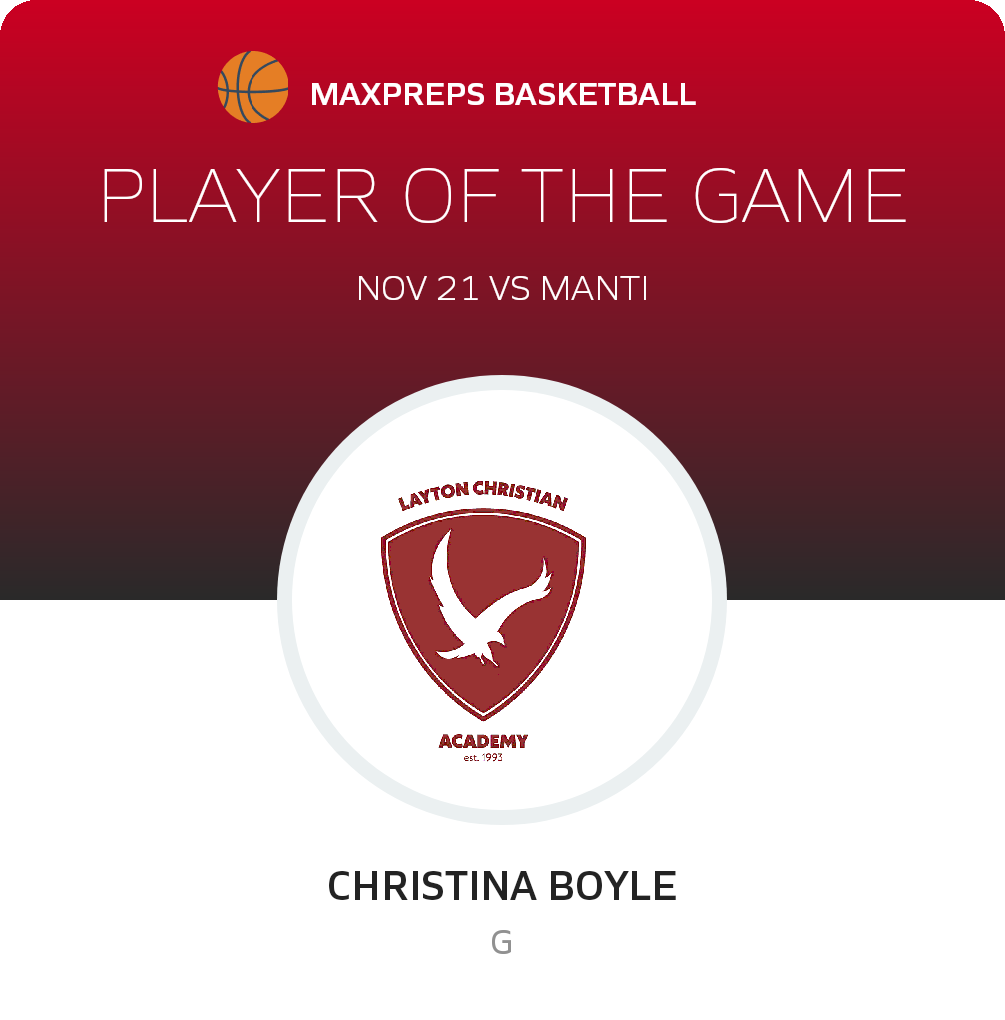 November 21, 2022: Layton, UT 84040 In Monday's non-league outing, the Layton Christian Academy Eagles (Layton, UT) basketball squad overwhelmed the visiting Manti Templars (Manti, UT), by a margin of 70-37.