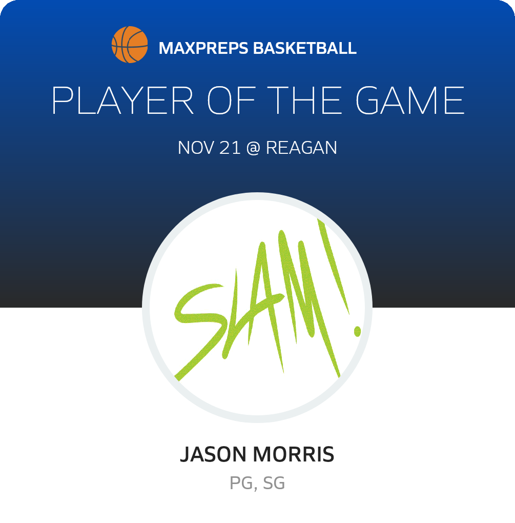 Congratulations to #10 Lucas Martinez for being selected the Reagan Basketball Player of the Game.