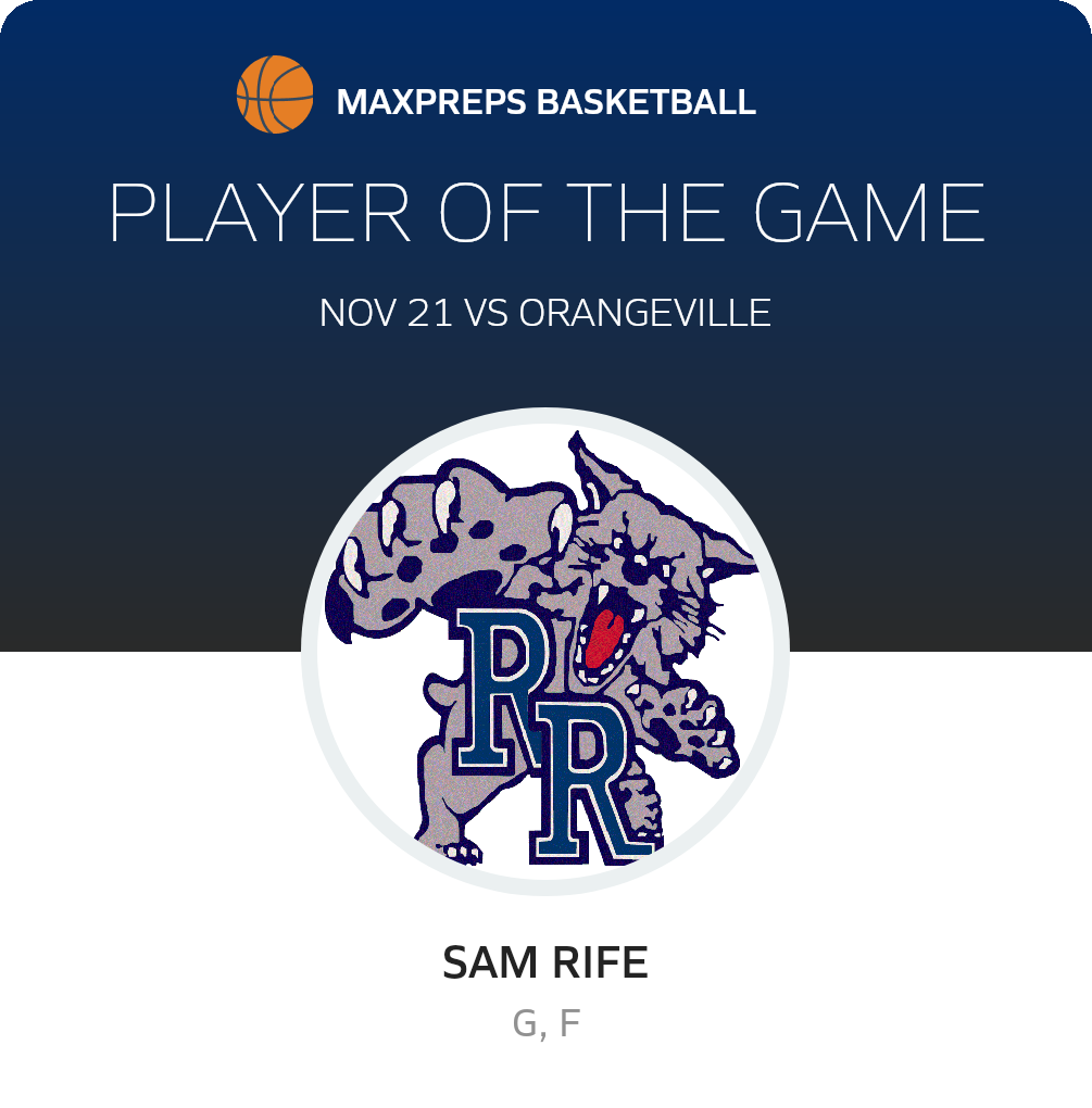 Congratulations to #0 Sam Rife for being selected the River Ridge JV Basketball Player of the Game.