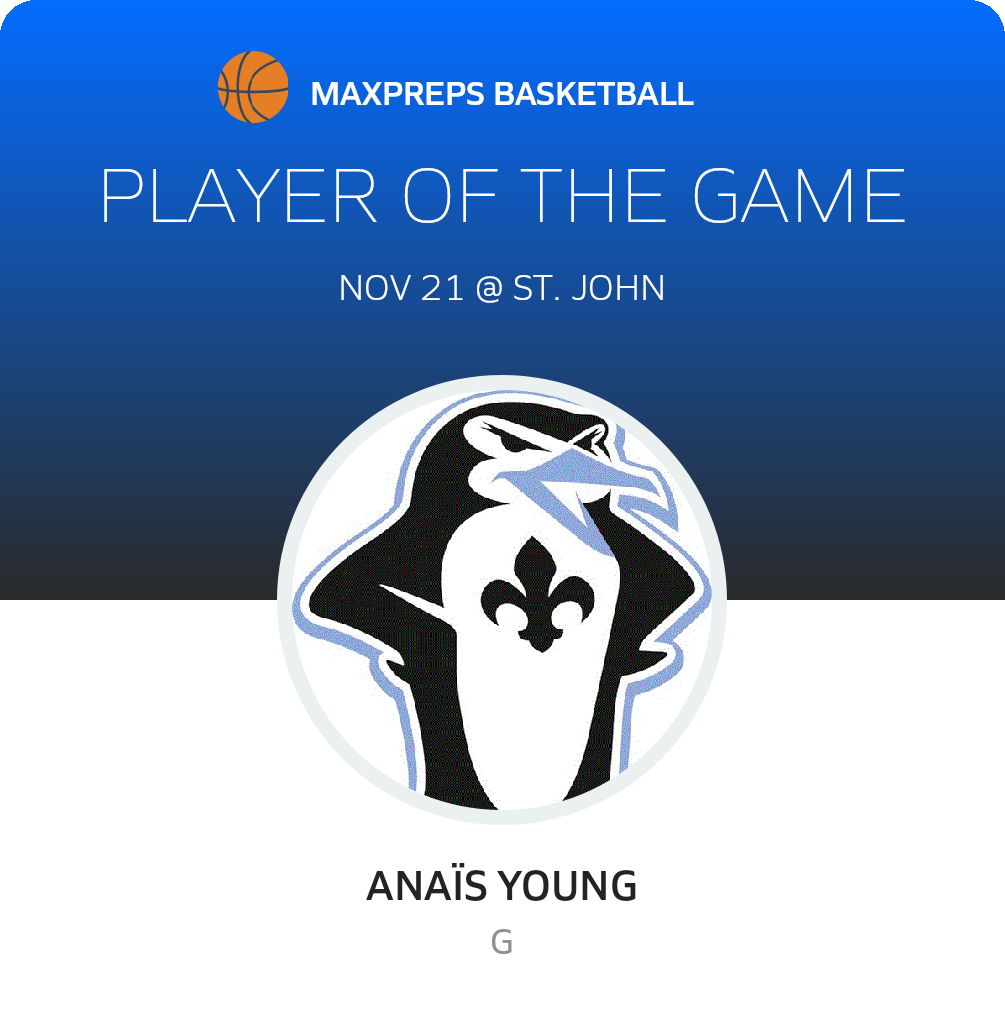 Congratulations to #2 Anaïs Young for being selected the Academy of Our Lady Girls Basketball Player of the Game.