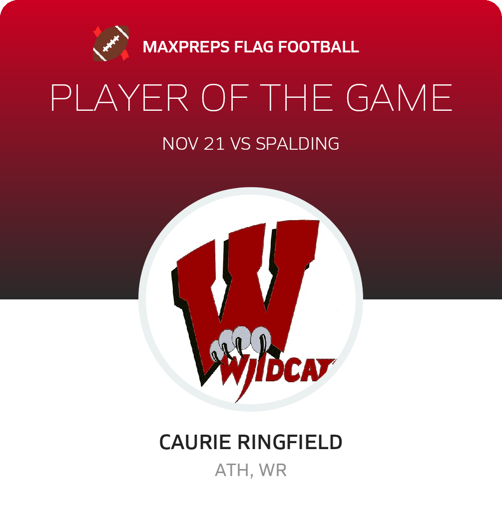 Congratulations to Caurie Ringfield for being selected the Whitewater Girls Flag Football Player of the Game.