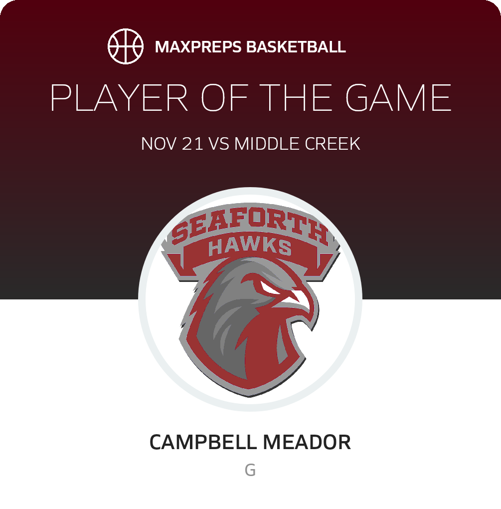 November 21, 2025: Pittsboro, NC 27312 The Middle Creek Mustangs basketball team scored 58 points and limited the host Seaforth Hawks to 32 in the Mustangs non-league triumph on Friday.