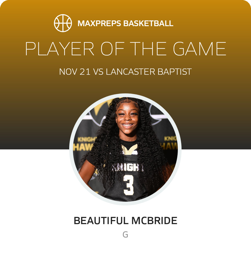 November 21, 2025: Palmdale, CA 93552 The Lancaster Baptist Eagles basketball team (Lancaster, CA), was routed 74-2 in Friday's non-league challenge with the host Knight Hawks (Palmdale, CA)