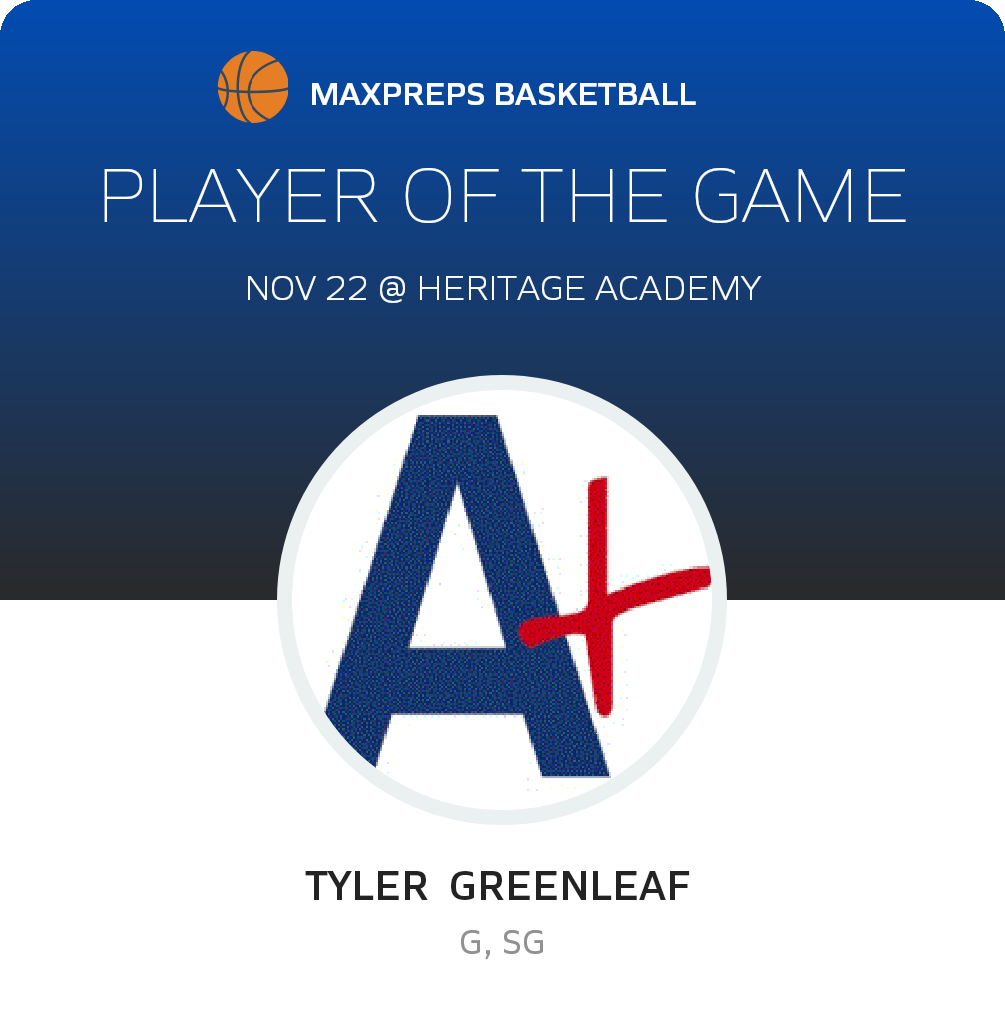 Congratulations to #3 Tyler Greenleaf for being selected the A+ Charter School Basketball Player of the Game.