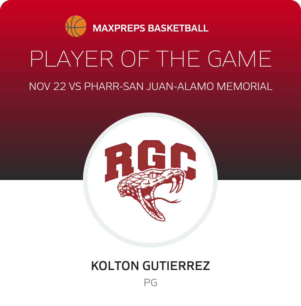 Congratulations to #11 Kolton Gutierrez for being selected the Rio Grande City Freshman Basketball Player of the Game.