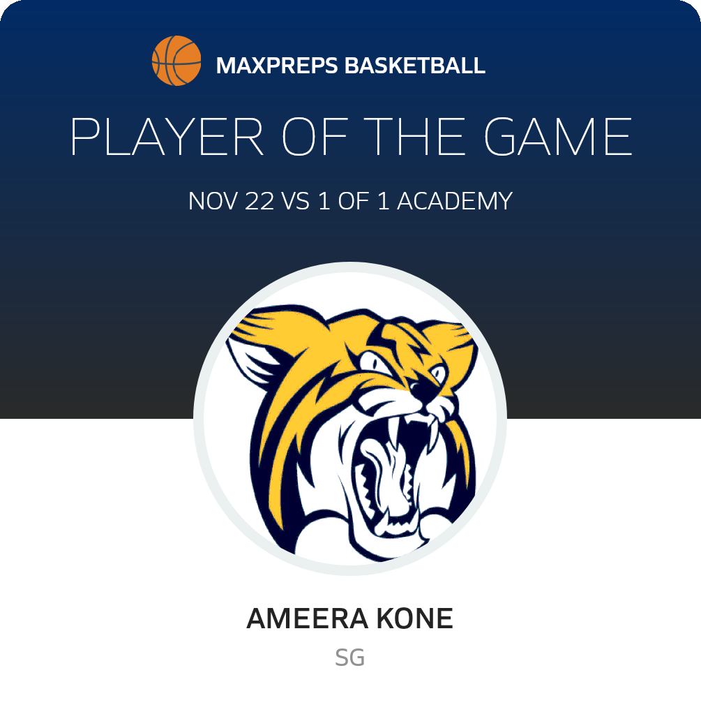 November 22, 2023: Indian Trail, NC 28079 In Wednesday's non-league outing, the Boca Raton Bobcats (Boca Raton, FL) basketball squad nipped the host 1 of 1 Academy (Indian Trail, NC), by a margin of 54-52.