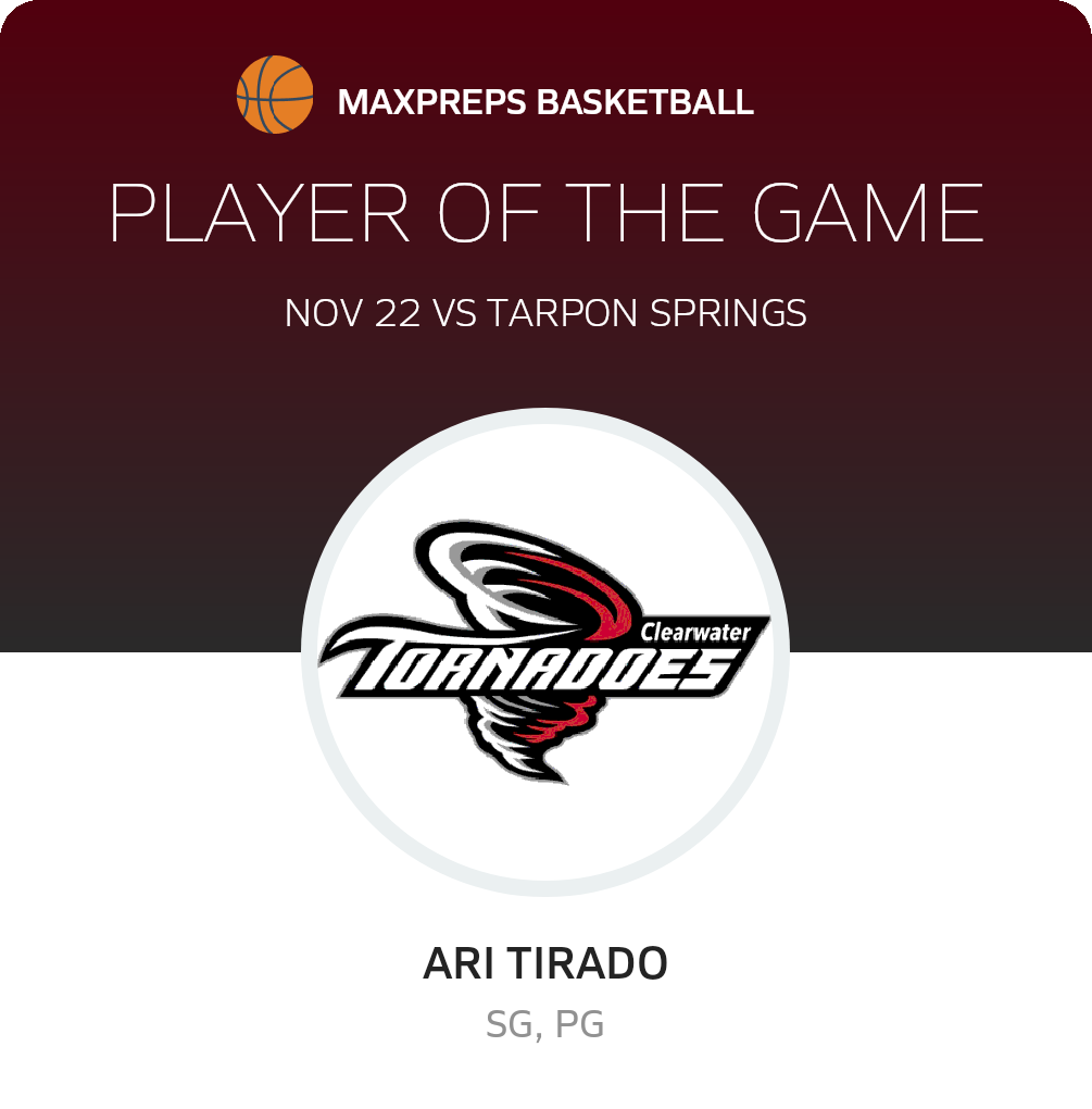 November 22, 2024: Clearwater, FL 33764 The Clearwater Tornadoes (Clearwater, FL) basketball crushed the visiting Tarpon Springs Spongers (Tarpon Springs, FL), 71-19 in Friday's non-league bout.