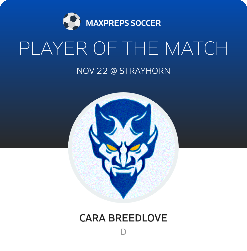 Congratulations to #8 Cara Breedlove for being selected the Booneville Girls Soccer Player of the Match.