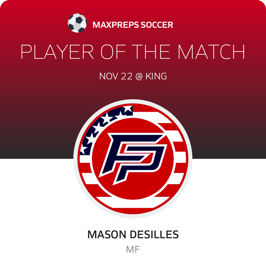 November 22, 2024: Tampa, FL 33610 In Friday's non-league contest, the Freedom Patriots (Tampa, FL) soccer team routed the host King Lions (Tampa, FL), by a count of 4-0.