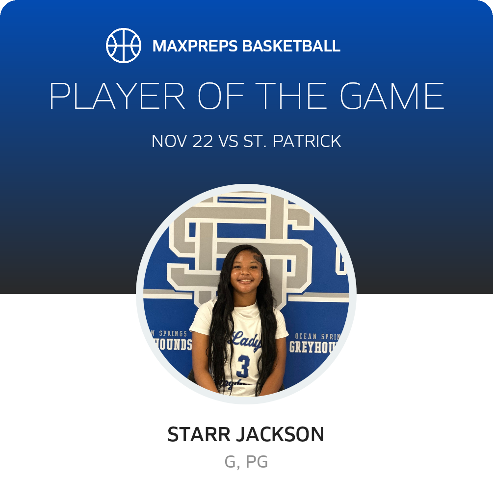 November 22, 2025: Ocean Springs, MS 39564 The Ocean Springs Greyhounds basketball team scored 58 points and limited the visiting St. Patrick Fighting Irish to 40 in the Greyhounds non-league triumph on Saturday.