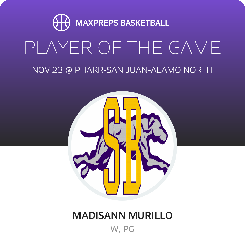 Congratulations to #1 Madisann Murillo for being selected the San Benito Girls Freshman Basketball Player of the Game.