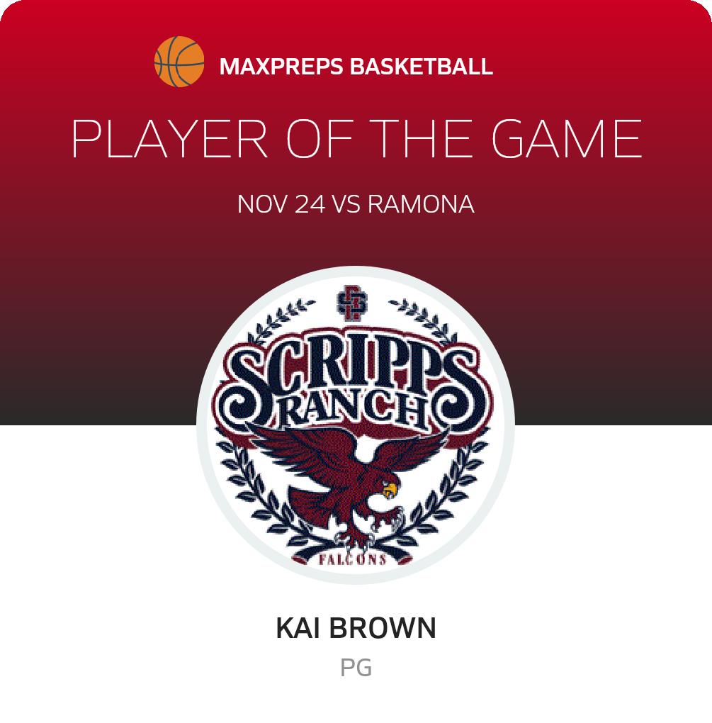 November 24, 2023: Ramona, CA 92065 In Friday's non-league outing, the Scripps Ranch Falcons (San Diego, CA) basketball squad overwhelmed the host Ramona Bulldogs (Ramona, CA), by a margin of 97-60.