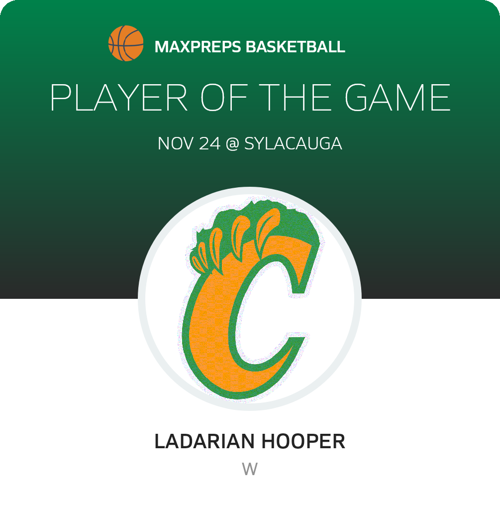 Congratulations to #12 Ladarian Hooper for being selected the Carver Montgomery Basketball Player of the Game.