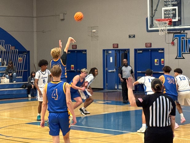 November 24, 2025: Manteca, CA 95337 The Linden Lions basketball squad (Linden, CA), was crushed 81-36 in Monday's non-league battle with the host Sierra Timberwolves (Manteca, CA)