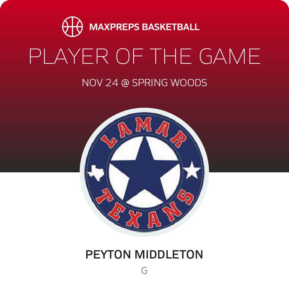 November 24, 2025: Houston, TX 77080 Lamar Texans (Houston, TX) boosters left the game satisfied Monday as they witnessed their basketball squad notch a victory over the host Spring Woods Tigers (Houston, TX), 54-35 in a non-league match.