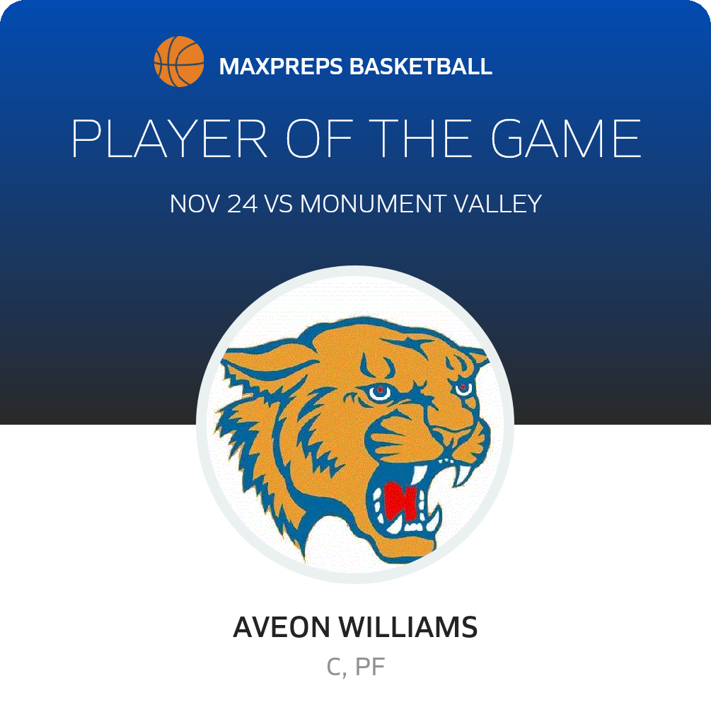 Congratulations to #33 Aveon Williams for being selected the Casa Grande Basketball Player of the Game.